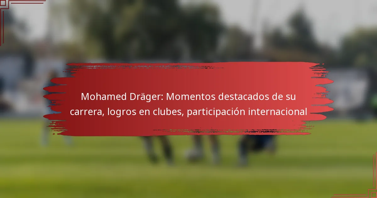 Mohamed Dräger ha alcanzado hitos significativos a lo largo de su carrera, caracterizados por su desarrollo desde el fútbol juvenil hasta el juego profesional. Su trayectoria incluye transferencias notables, actuaciones destacadas y contribuciones tanto a equipos de clubes como a selecciones internacionales.
