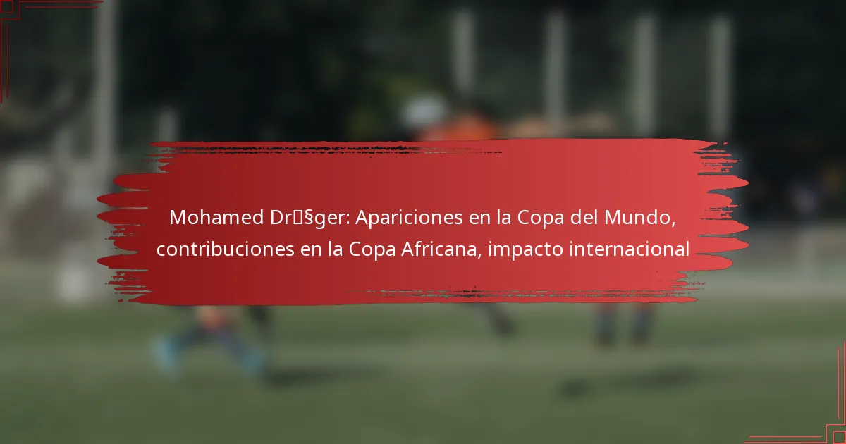 Mohamed Dräger ha tenido un impacto notable en el fútbol internacional, representando a Túnez en la Copa Mundial de la FIFA y en la Copa Africana. Sus actuaciones no solo han destacado su talento individual, sino que también han mejorado la dinámica del equipo, estableciéndolo como un jugador clave en la historia del fútbol tunecino.